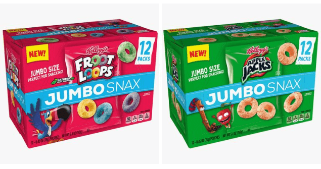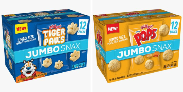 Kellogg’s is releasing “Jumbo Snax” versions of its most popular brands of cereal.