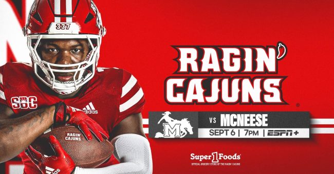 The Ragin’ Cajuns will take on McNeese in game two of the 2025 football season September 6th at 7 p.m. at Cajun Field.