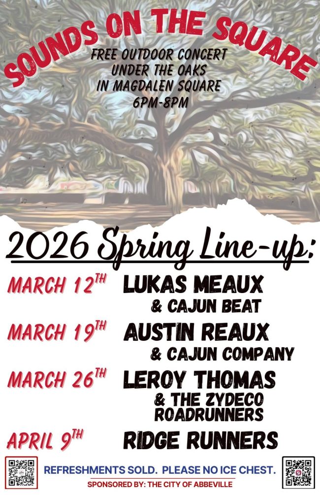 The 2026 Spring Sounds on the Square lineup, kicking off Thursday, March 12!