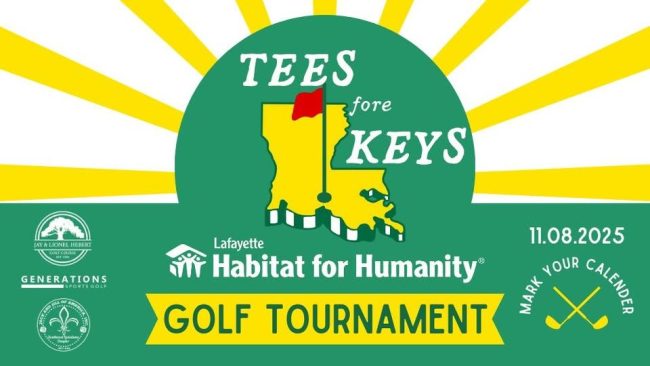 It’s a day of fun on the greens for the Lafayette Habitat for Humanity “Tees fore Keys” Golf Tournament at the Jay & Lionel Hebert Municipal Golf Course November 8 beginning at 8 a.m. This exciting event combines the love of golf with the mission of giving back. Enjoy a day on the fairway while supporting Lafayette Habitat for Humanity!