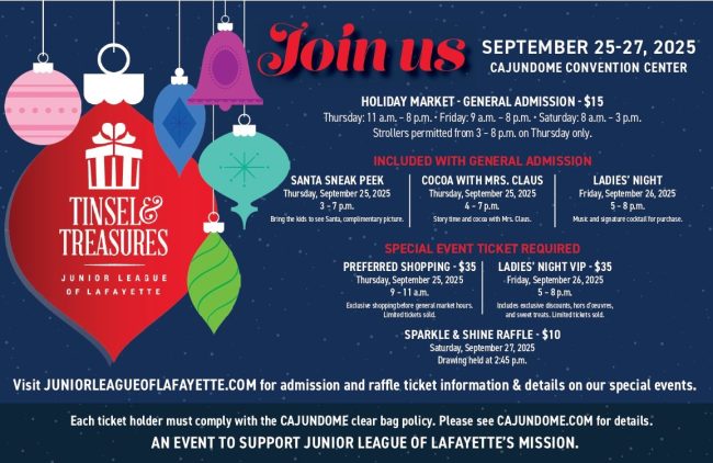 or through Junior League of Lafayette Headquarters (either in person at 504 Richland Avenue in River Ranch or by phone at 337.988.2739). You can also purchase tickets from the CAJUNDOME Box Office and Ticketmaster.com.