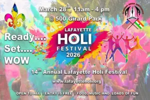 Get ready to throw some color, share some laughs, and celebrate —community, family, and togetherness at the 14th Annual Lafayette Holi Festival March 28th from 11 to 4 in Girard Park. Bring your ...Read more