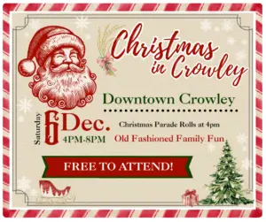 Christmas in Crowley & Christmas Parade – Christmas in Crowley is where holiday magic comes alive in Downtown Crowley December 6th from 4pm-7pm! Enjoy festive lights, shopping, music, and ...Read more